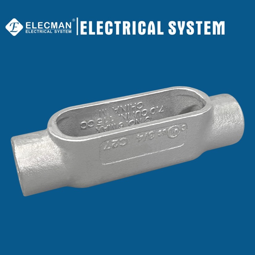 ELECMAN ®는 7 회색 주철 1/2를 형성합니다 - 3 IMC / 고정관 몸이 C 형에 실을 뀄습니다, 주입구와 수단이 액세스 덮개의 상단과 바닥에 있습니다. 이런 종류의 도관 본체는 직류물에서 관리인들을 당깁니다. C자 모양 본체로, 관리인들은 주입구와 수단 사이에 전환을 만들지 않습니다. C자 모양 관로는 실내이고 야외 사용에 어울립니다.