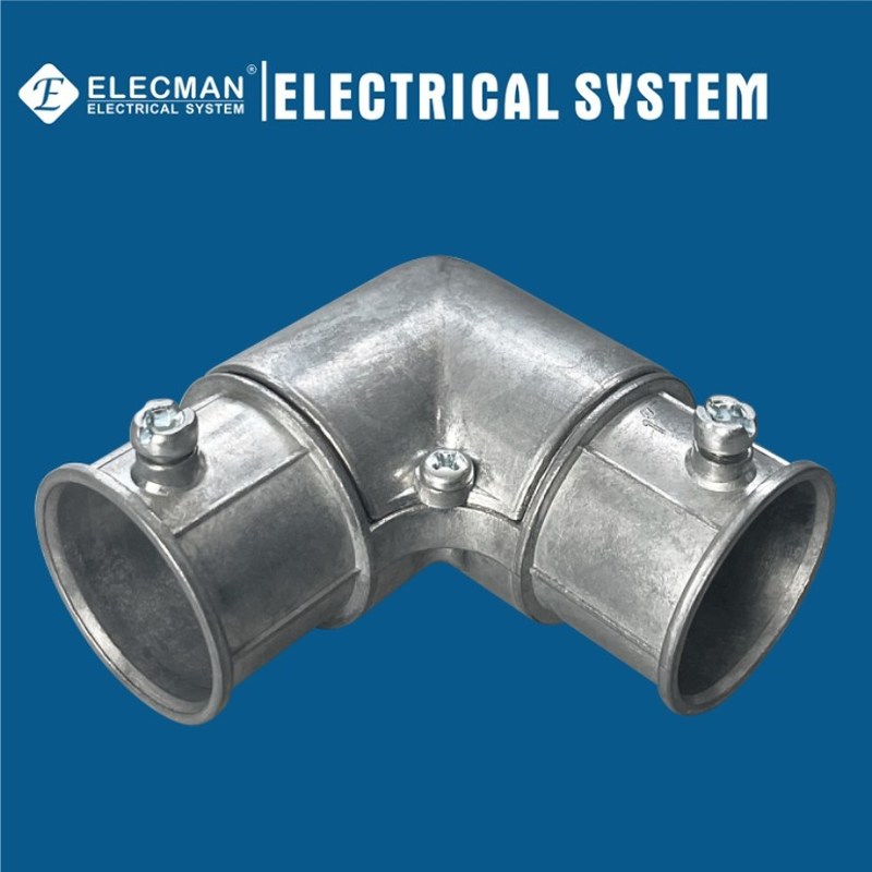 ELECMAN은 1/2" 및 3/4" 코너 고정나사 엘보우 내부에 풀 사이즈 EMT 피팅 아연 다이캐스트 90도를 제공합니다.