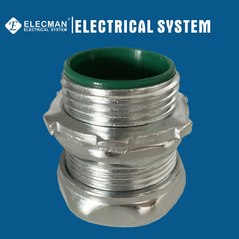 ELECMAN® 압축 형태 철강 건축된 EMT 연결기는 사용의 편리함을 제공하고, 얇은 벽 EMT 관로의 가담하는 안전한 분명한 곤경을 제공합니다. 격리된 목구성과 모델들은 찰과상에 대한 추가적 보호를 제공합니다. 집회는 아연 도금 강철 잠금용 너트를 포함합니다. 1/2부터 4까지 사이즈에 이용할 수 있는 모든 모델들 ; 보호구를 보증하기 위해 아연 플레이트식 말단과 강한, 탄력있는 강철로부터 제조됩니다 ; UL은 목록화되었습니다.
